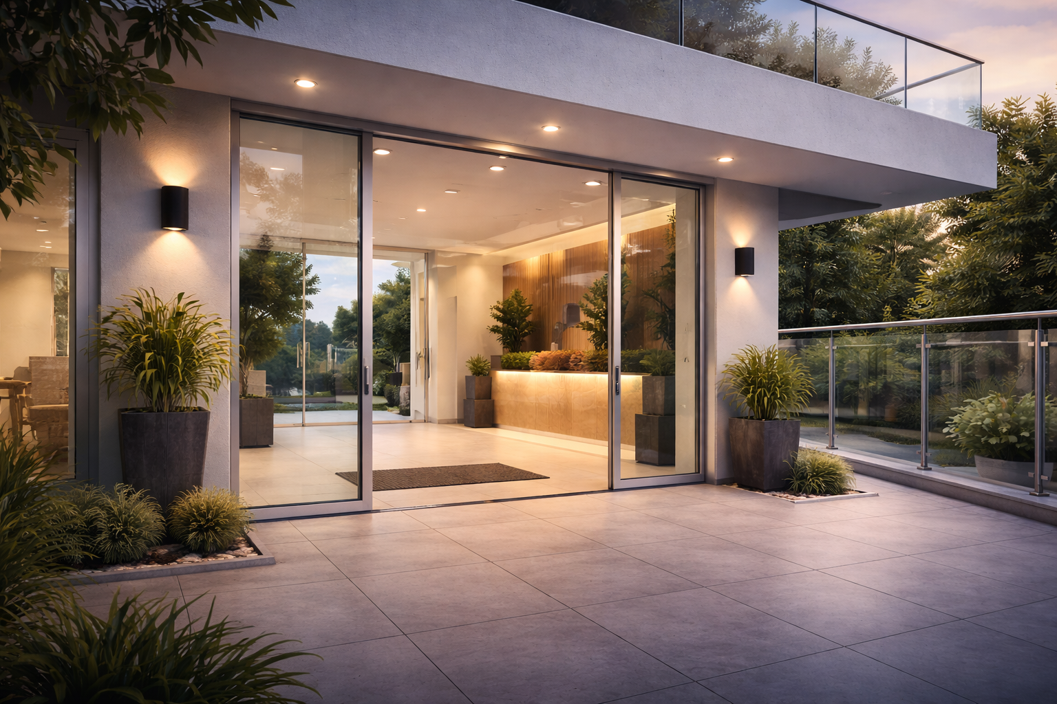 Fachadas, portas de vidro e esquadrias que valorizam o ambiente e trazem praticidade para o dia a dia.