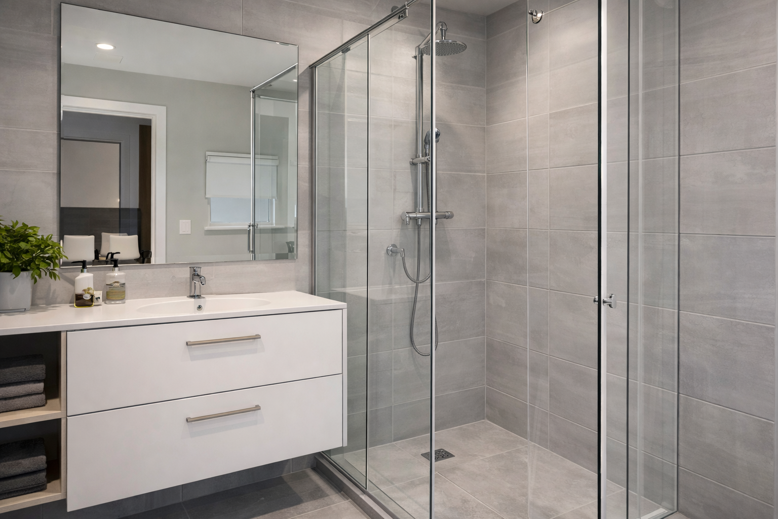 Box, espelhos e soluções sob medida para melhor aproveitamento do espaço e acabamento mais elegante.
