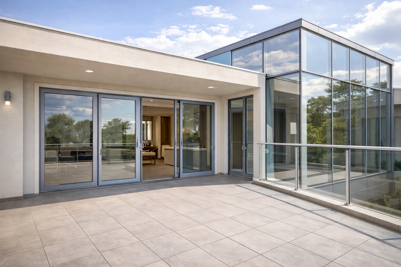 Guarda-corpo, portas e estruturas em vidro e alumínio para segurança, resistência e estética.